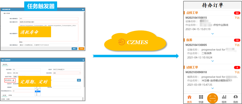 点检、保养任务按照标准规范维护,模具的不同作业项可以按照不同的策略自动生成作业计划。